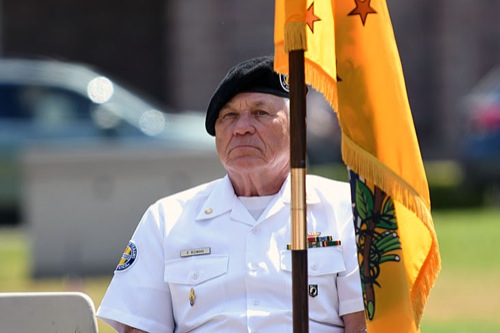 Francis Rowan, a Navy veteran of the Vietnam War, participates in the Memorial Day service at Hillcrest Memorial Park on May 29. 2017. (Scott Stoddard / Daily Courier)