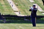 Leiland "Bud" Moon of Grants Pass salutes during the retiring of the colors at the Memorial Day service at Hillcrest Memorial Park on May 29. 2017. (Scott Stoddard / Daily Courier)