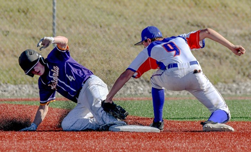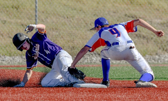Photo by JOEL TAKARSH/for The Daily Courier PIC #0478 (4th inning) HV #9 tags out AST. #4 trying to steal 2nd base