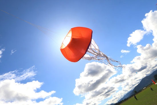 TIMOTHY BULLARD/Daily Courier A large jellyfish shaped kite flows in the wind Thursday as the Grants Pass Balloon and Kite Festival kicked off.