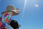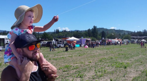 Zoey Norris, 2, of Medford holds a string attached to her kite on Saturday. Dad Evan Norris assists.