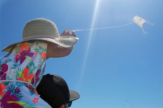 SHAUN HALL/Daily Courier Zoey Norris, 2, of Medford holds a string attached to her kite on Saturday. Dad Evan Norris assists.