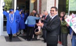 CHRIS BRISTOL/Daily Courier Caleb Maler chats with fellow grad Andru Valadez during Caleb’s special graduation ceremony Friday at Grants Pass High School.