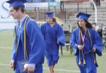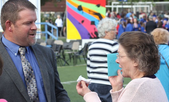 District 7 Superintendent Kirk Kolb chats with Elizabeth Maler at the conclusion of Caleb Maler’s special graduation ceremony Friday at Grants Pass High School.