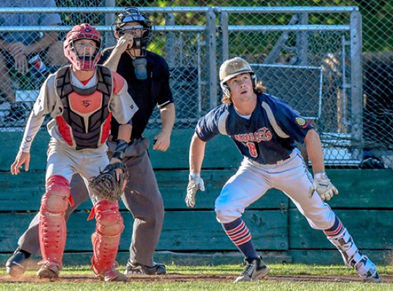 Photo by JOEL TAKARSH/for The Daily Courier PIC #0514 (3rd inning) Nuggets #8 watches hoping for a home-run but it goes for an off-the wall double