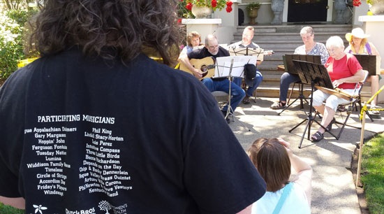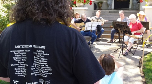 SHAUN HALL/Daily Courier T-shirt with Porchfest musicians listed.