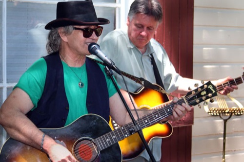 Musician Howard Morlan (left) jams with the Widdison Family Review on N.W. Lawnridge Ave. Kevin Widdison (right) said, "Family is a very loose phrase, I consider all musicians family."