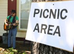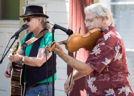 Musicians Howard Morlan (left) and Warren Whislter jam with the Widdison Family Review on N.W. Lawnridge Ave. "Family is a very loose phrase," Widdison told listeners. "I consider all musicians family."