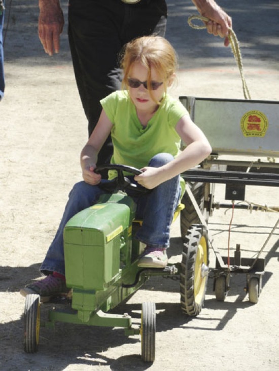 Lexy Fields, 5, of Wimer gets up to speed in the kid's tractor pull at the 32nd Annual Father's Day Antique Engine and Tractor Show in Pottsville Saturday. For more pictures see the photo gallery at the thedailycourier.com.