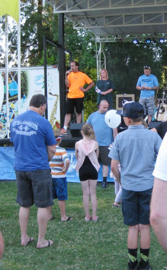 EDITH DECKER/Daily Courier Darren Merker kicks-off the first Concerts in The Park series that opened Tuesday at Riverside Park.