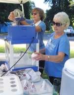 A family — bulldog included — enjoys the first Concerts in the Park event Tuesday evening at Riverside Park, featuring Etouffee, led by rockin' Cajun fiddler Kelly Thibodeaux.