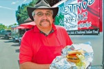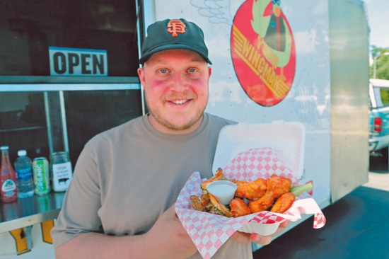 Brett Bellamy started Your Wingman just over four years ago. "When the recession hit, I went to culinary school because everybody has to eat," he says. Here, he shows off his original Buffalo wings served with garlic parmesan jojos.