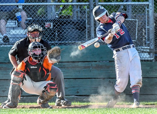 Photo by JOEL TAKARSH/for The Daily Courier PIC #0414 (2nd inning) Nuggets #12 hits a double that drives in 2 runs