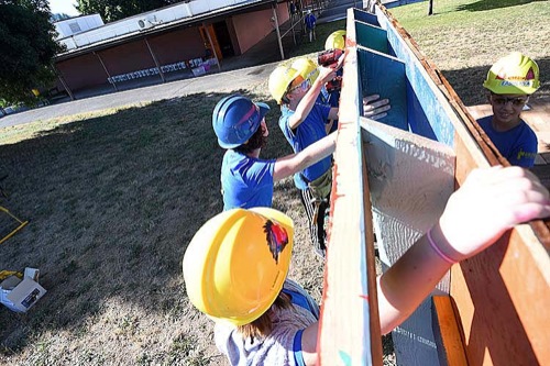 Scenes from the Girls Build camp at Lincoln Savage Middle School in Murphy on June 30, 2017. Girls Build Executive Director Katie Hughes, a graduate of Lincoln Savage and Hidden Valley High, said 42 girls between the ages of 8 and 13 participated in the five-day camp. Activities included carpentry, masonry, wiring, plumbing and painting, and a playhouse built by campers will be donated to the Women's Crisis Support Team's safe house. (Scott Stoddard/Daily Courier)