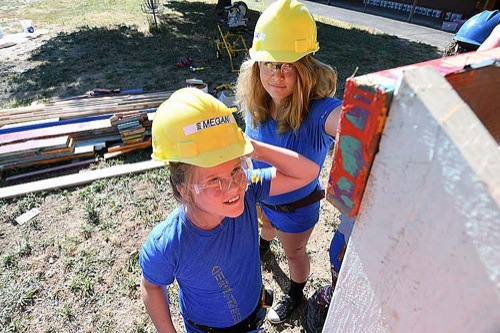 Scenes from the Girls Build camp at Lincoln Savage Middle School in Murphy on June 30, 2017. Girls Build Executive Director Katie Hughes, a graduate of Lincoln Savage and Hidden Valley High, said 42 girls between the ages of 8 and 13 participated in the five-day camp. Activities included carpentry, masonry, wiring, plumbing and painting, and a playhouse built by campers will be donated to the Women's Crisis Support Team's safe house. (Scott Stoddard/Daily Courier)