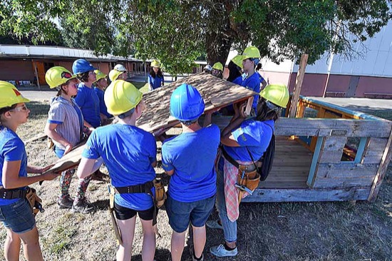 Scenes from the Girls Build camp at Lincoln Savage Middle School in Murphy on June 30, 2017. Girls Build Executive Director Katie Hughes, a graduate of Lincoln Savage and Hidden Valley High, said 42 girls between the ages of 8 and 13 participated in the five-day camp. Activities included carpentry, masonry, wiring, plumbing and painting, and a playhouse built by campers will be donated to the Women's Crisis Support Team's safe house. (Scott Stoddard/Daily Courier)