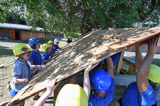 Scenes from the Girls Build camp at Lincoln Savage Middle School in Murphy on June 30, 2017. Girls Build Executive Director Katie Hughes, a graduate of Lincoln Savage and Hidden Valley High, said 42 girls between the ages of 8 and 13 participated in the five-day camp. Activities included carpentry, masonry, wiring, plumbing and painting, and a playhouse built by campers will be donated to the Women's Crisis Support Team's safe house. (Scott Stoddard/Daily Courier)