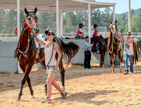 Photo by JOEL TAKARSH/for The Daily Courier PICS #0492 Horses being prepped for Race #8
