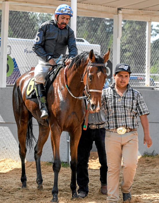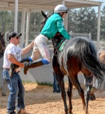 Photo by JOEL TAKARSH/for The Daily Courier PIC #0578 Jockey (not sure of name) ready to go out on the track for Race #8