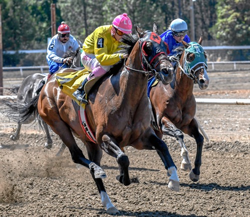 Photo by JOEL TAKARSH/for The Daily Courier PIC #0242 Winner of Race # 6 (Yellow -Jockey #4) and 2nd place (Blue - Jockey #3)