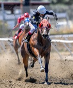 Photo by JOEL TAKARSH/for The Daily Courier PIC #0460 Firecracker Futurity winning jockey # 3 waves at crowd
