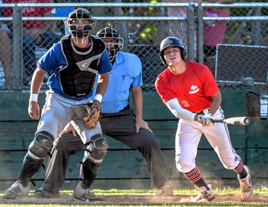 Photo by JOEL TAKARSH/for The Daily Courier PIC #0636 (4th inning) Nuggets #3 watches his hit go for a double driving in a run