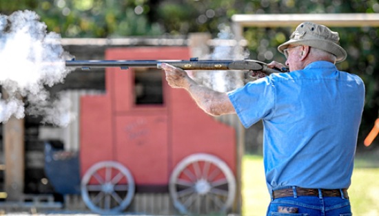 Photo by JOEL TAKARSH/for The Daily Courier PIC #0505 Vince Pelly of Redmond, Oregon fires a black powder percussion rifle