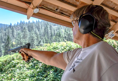 Photo by JOEL TAKARSH/for The Daily Courier PIC #0619 Neysa Bush from Sacramento, CA takes aim with black powder competition pistol