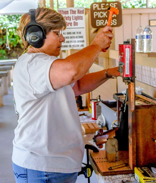 Photo by JOEL TAKARSH/for The Daily Courier PIC #0573 Neysa Bush fro Sacramento, CA preps her competition pistol