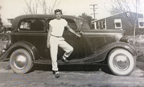 This 1934 Ford was my first car when I was 16. I was looking for a car and my dad didn't like anything I picked out so I gave him my $140 and told him to find me a car. When I got it I went to a buddy’s house and we took off the trunk. My dad said I ruined it and I thought I was fixing it up. Today I would take the car and the trunk!