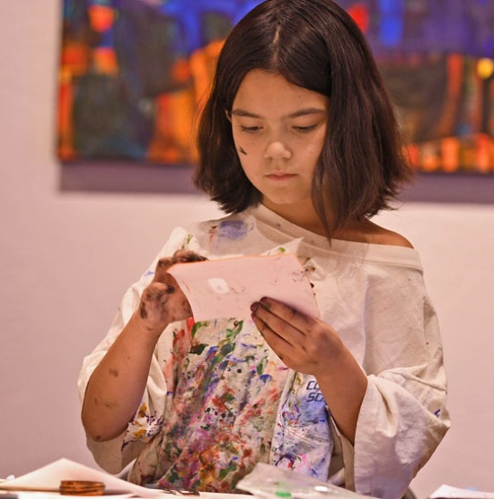Lyzeah Marroquin, 9, works on a project during a printmaking workshop for kids at the Grants Pass Museum of Art on Tuesday, July 25, 2017. (Scott Stoddard / Daily Courier)
