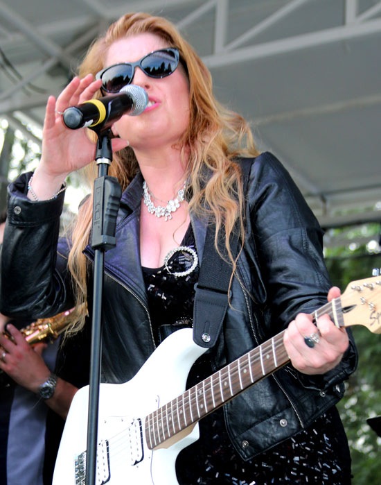TIMOTHY BULLARD/Daily Courier Janeen McGinnis belts out a tune during the Back to the Fifties concert at Riverside Park on Tuesday.
