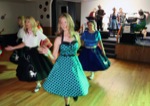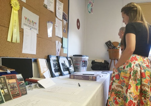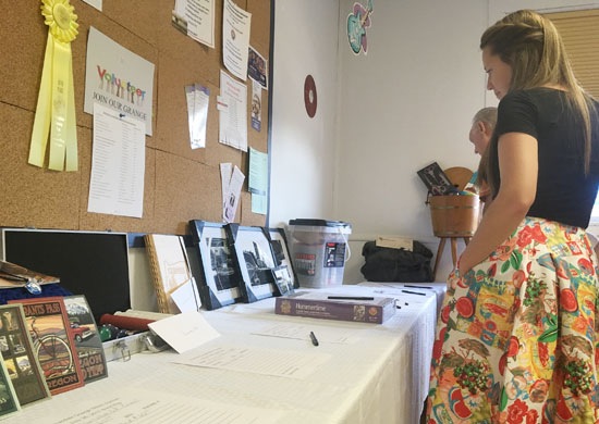 LeAnna Williford, a teacher in Grants Pass, looks over items included in the Fruitdale Grange's silent auction during the sock hop in the building Wednesday night. The new Grants Pass resident, who relocated to the area with her family recently, attended the sock hop with her husband and daughter.