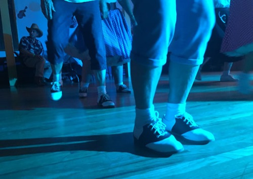 Several people showed up wearing saddle shoes, a popular style of shoe in the 1950s, to the sock hop at the Fruitdale Grange Wednesday night. Live music, a silent auction, root beer floats and dancing were all part of the festivities during the event.