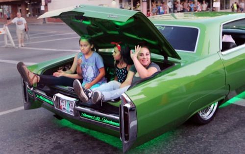 TIMOTHY BULLARD/Daily Courier Some riders seemed to have the perfect vantage point at the Back to the Fifties Classic Car Cruise Saturday.