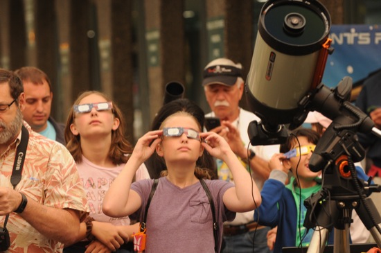 Scenes from the Grants Pass Astronomy Club's eclipse viewing party at Town Center Plaza on Monday, Aug. 21, 2017. (Scott Stoddard / Daily Courier)