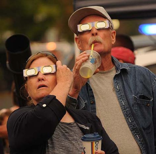 Scenes from the Grants Pass Astronomy Club's eclipse viewing party at Town Center Plaza on Monday, Aug. 21, 2017. (Scott Stoddard / Daily Courier)