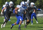 Grants Pass running back Vincent Washington (27) embarks on a long first-quarter touchdown run to score the first points of the game against Century on Friday afternoon in Hillsboro. The Cavemen triumphed 45-34 in the season opener for both teams.