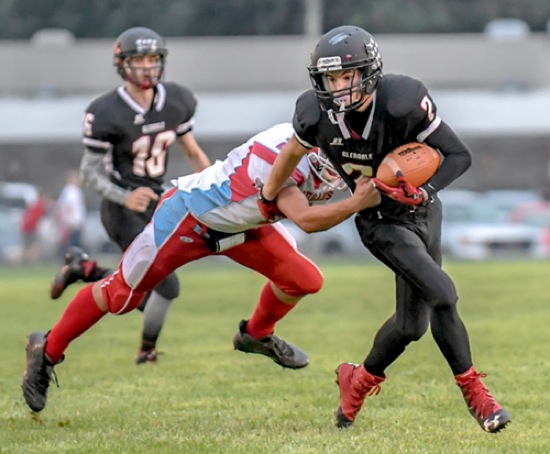 Photo by JOEL TAKARSH/for The Daily Courier PIC #0287 Glendale #2 carries the ball as Crow #2 tries to tackle