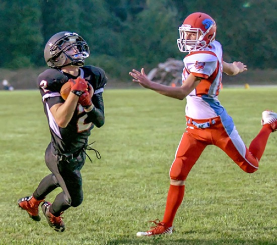Photo by JOEL TAKARSH/for The Daily Courier PIC #0594 Glendale #2 catches a pass as Crow #12 watches