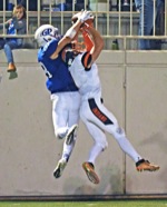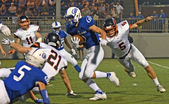Niko Phillips of Grants Pass (center) returns a punt during the second quarter against Roseburg.
