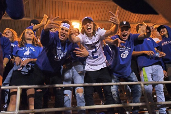 The Grants Pass student section was fired up as the Cavemen rolled to a 30-7 victory over Roseburg.
