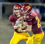 Grants Pass running back Victor Ruiz emerges from a pile of tacklers during a first-quarter drive against Willamette on Friday night in Eugene. Grants Pass triumphed 33-31 and improved to 4-0 on the season.