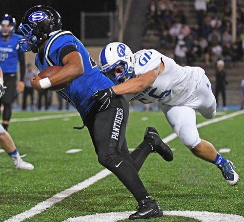 Scenes from the Grants Pass-South Medford game at Spiegelberg Stadium. The Panthers prevailed over the Cavemen, 40-21.