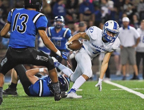 Scenes from the Grants Pass-South Medford game at Spiegelberg Stadium. The Panthers prevailed over the Cavemen, 40-21.
