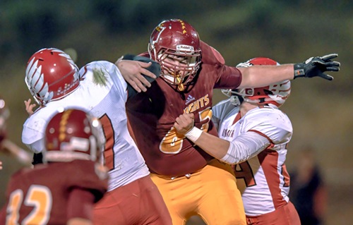 Photo by JOEL TAKARSH/for The Daily Courier PIC #0063 NV #63 blows by KU #24 trying to get to KU QB #7