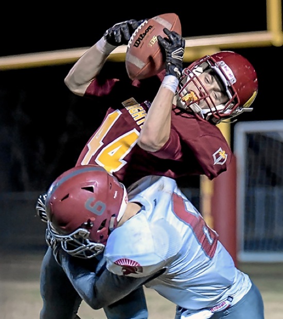 Photo by JOEL TAKARSH/for The Daily Courier PIC #0360 NV #44 catches pass that sets up NV's 2nd TD DG #6 defends