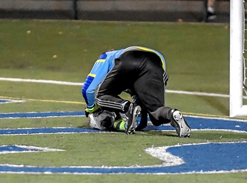 Photo by JOEL TAKARSH/for The Daily Courier PIC #1663 Goalie on ball (DEAD)
