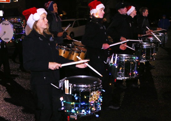 TIMOTHY BULLARD/Daily Courier The Grants Pass High School Marching Band percussionists decorated their drums with mini-lights