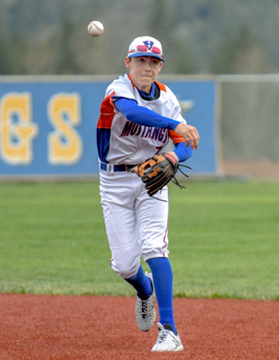 Photo by JOEL TAKARSH/for The Daily Courier, PIC #1673 HV 2nd baseman #7 makes throw to 1st base for the out